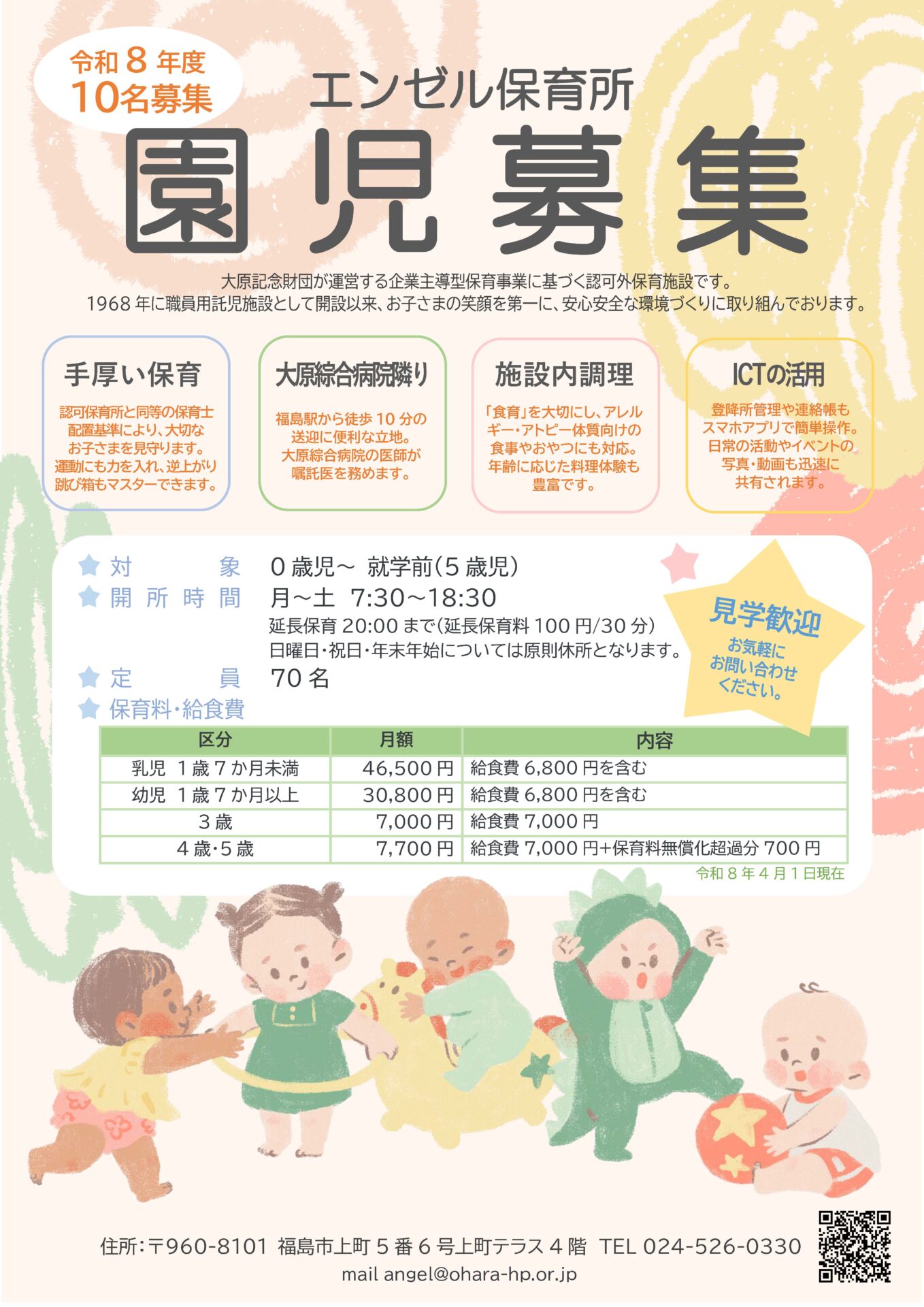 エンゼル保育所では園児の外部受け入れを開始しました(令和8年度・残り10名)